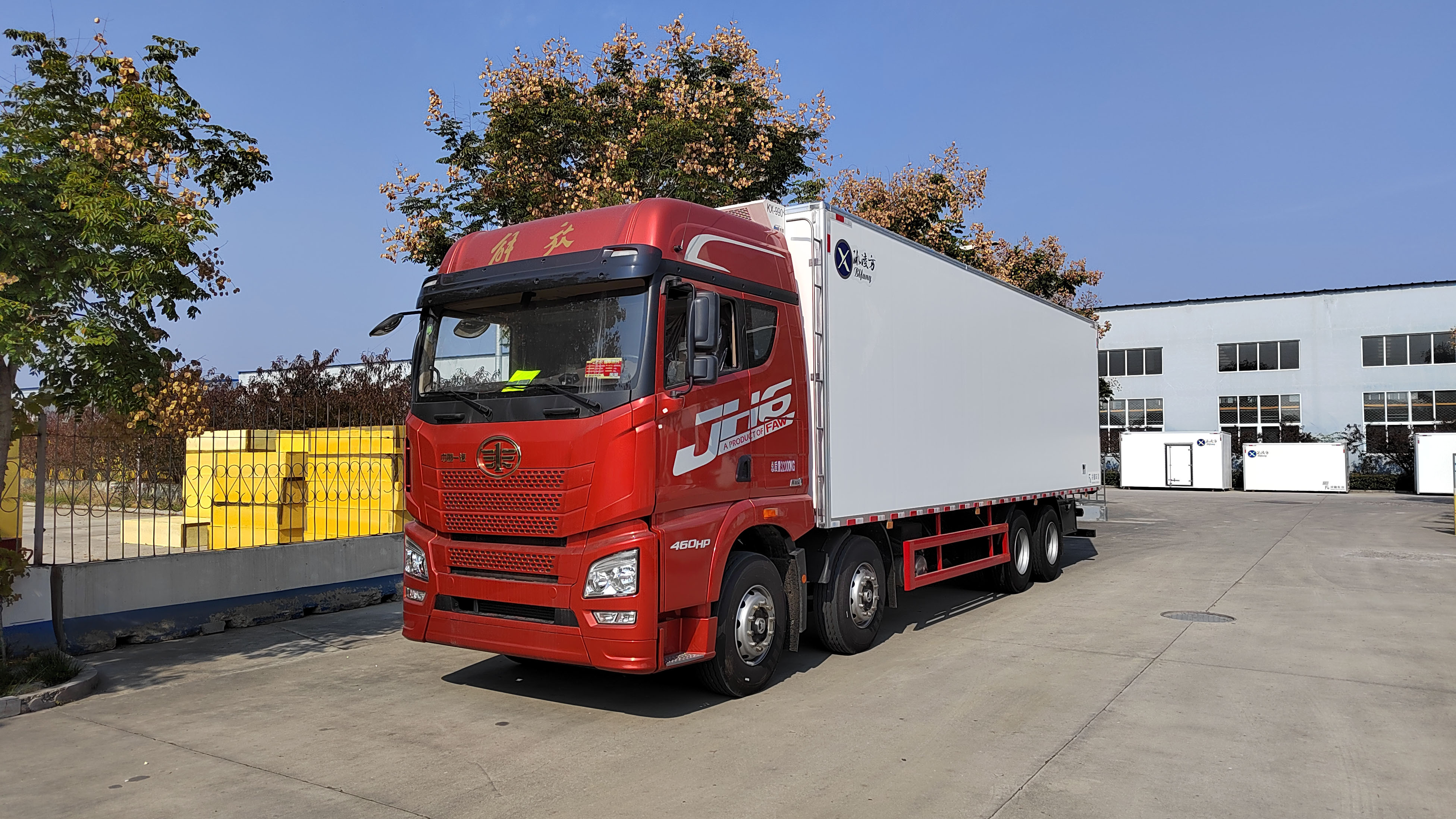 冰凌方冷藏車采用全封閉聚氨酯板塊粘接玻璃鋼結構,廂體比同類產品輕,能有效的降低運輸成本。廂體采用高分子聚酯材料熱壓成型,采用全封閉結構。一體化的內部加強筋,極大的增加了廂板強度,高強度、高密封性膠合劑,形成一個整體,耐腐蝕性好。采用“三明治”壓法,保證廂板內無空氣間隙,廂體無金屬冷橋,導熱率低。