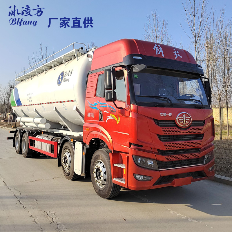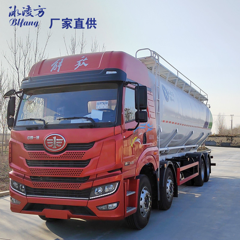 前四后八散裝飼料罐運(yùn)輸車 冰凌方散裝飼料運(yùn)輸車解放悍V氣推式15噸32立方